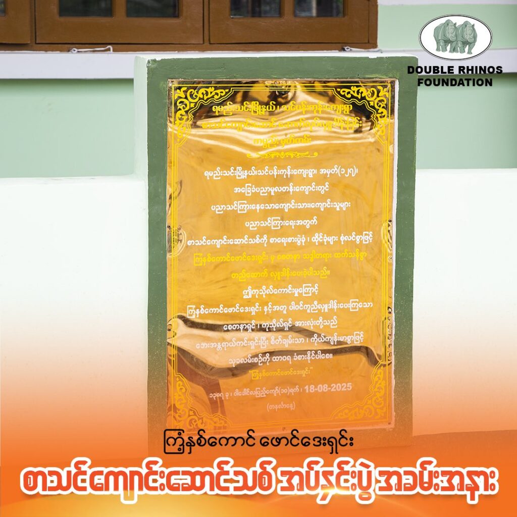 ကြံ့နှစ်ကောင် ဖောင်ဒေးရှင်းအဖွဲ့ဝင်များနှင့်အတူ အဘက်ဘက်မှ ပါဝင်ကူညီလှူဒါန်းပေးကြသော စေတနာရှင် ကုသိုလ်ရှင်များအားလုံး ဘေးအန္တရာယ်ကင်းရှင်းပြီး စိတ်၏ချမ်းသာခြင်း ကိုယ်၏ကျန်းမာနှင့် ပြည့်စုံပါစေကြောင်း ဆုတောင်းမေတ္တာပို့သအပ်ပါတယ်ခင်ဗျာ
