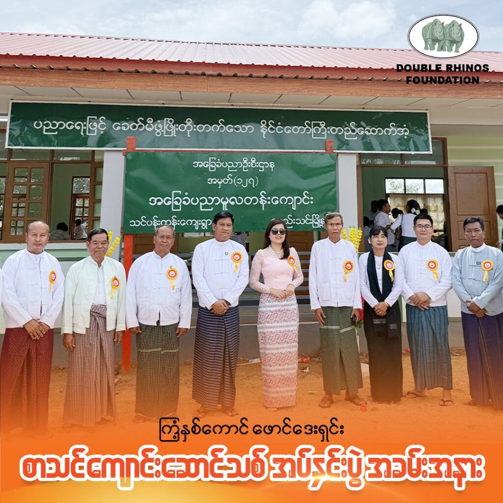 ကြံ့နှစ်ကောင် ဖောင်ဒေးရှင်း၏ ငလျင်ဒဏ်သင့် အခြေခံပညာစာသင်ကျောင်းများ ပြန်လည်ထူထောင်ရေးအစီအစဉ်ဖြင့် ဆောက်လုပ်လှူဒါန်းခဲ့သော ရမည်းသင်းမြို့နယ်၊ သင်ပန်းကုန်းကျေးရွာ၊ အခြေခံပညာမူလတန်းကျောင်းဆောင်သစ်ဖွင့်ပွဲ အခမ်းအနား